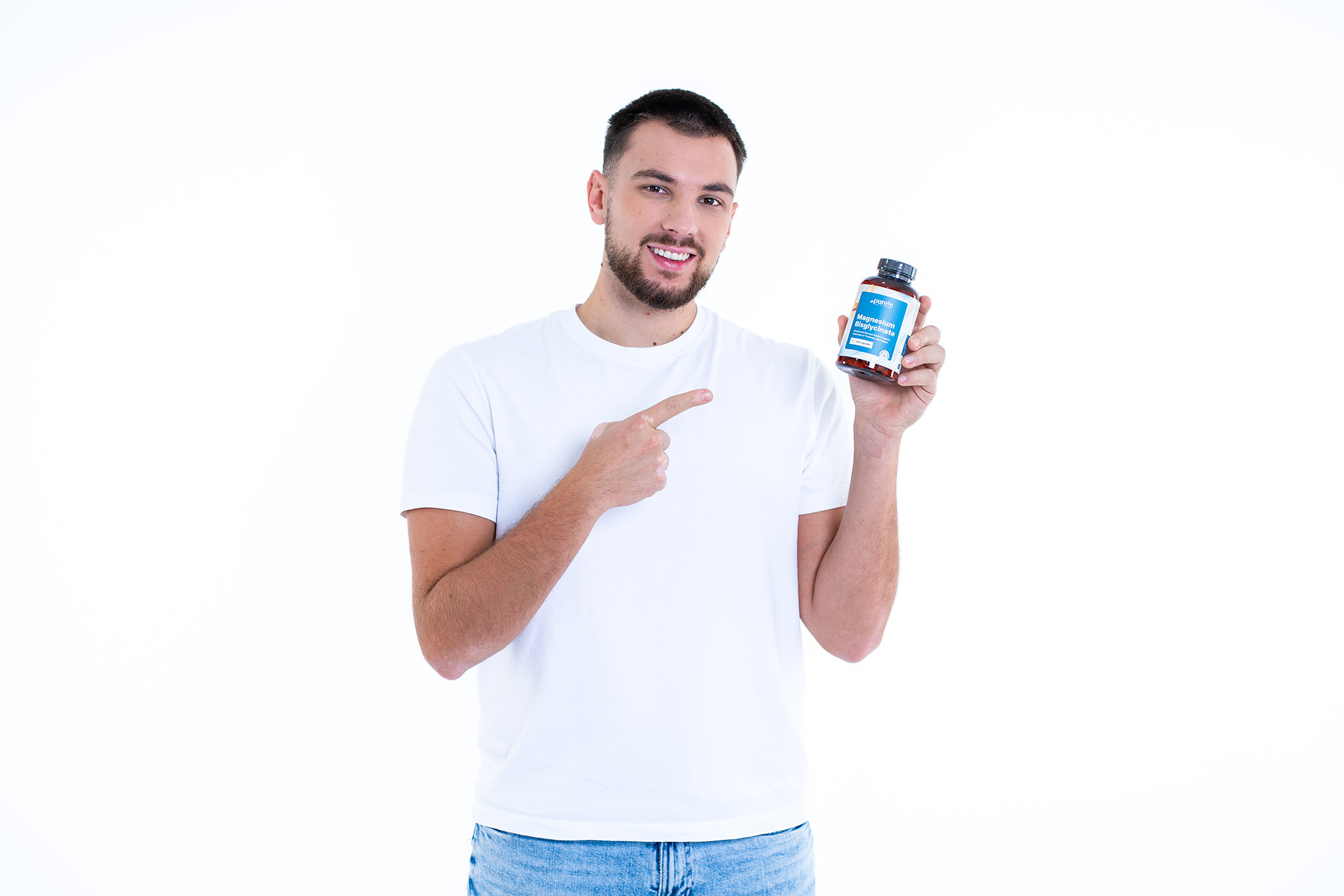 Съставки: магнезиев бисглицинат, микрокристална целулоза (набухвател), хидроксипропил метилцелулоза (HPMC; обвивка на капсулите), магнезиев стеарат (антислепващ агент).